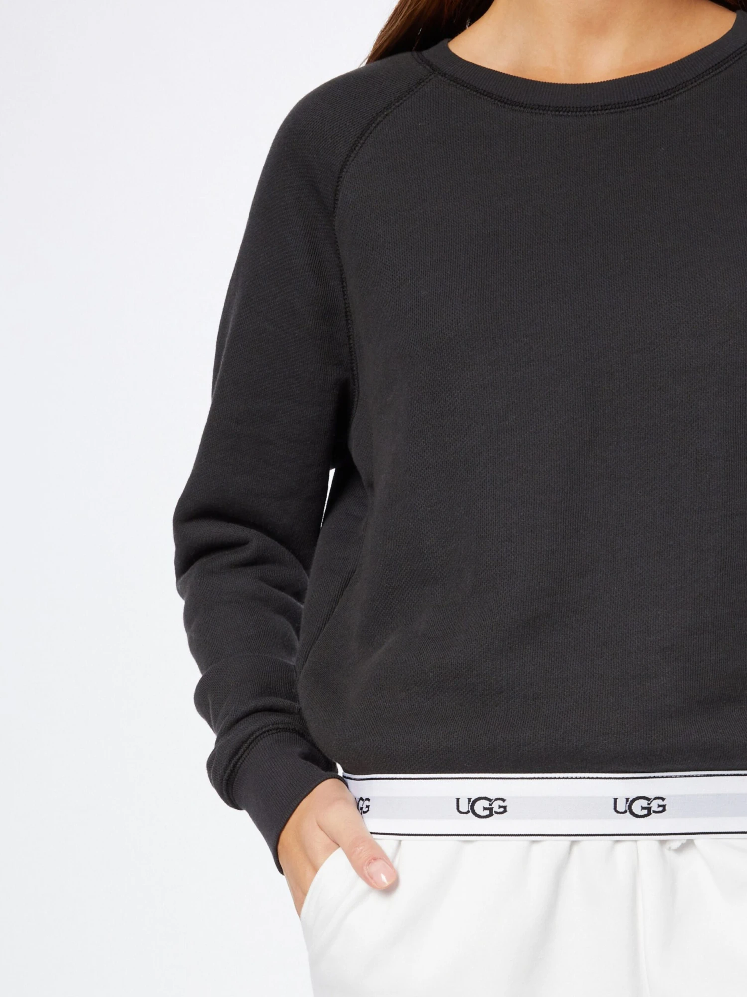 LogoprintSweatstofRonde halsGeribbelde kraagRaglanmouwenGeribd ceintuurtjeOp staal nadenVoelt zacht aan